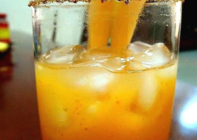 बर्फ,आचार- 1/2 छोटा चम्मच,आम का रस- 90 मिलीलीटर,टबैस्को सॉस- 1 ड्रॉप,नींबू का रस- 1/2 छोटा चम्मच