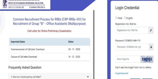 इंस्टीट्यूट ऑफ बैंकिंग पर्सोनेल सेलेक्शन (IBPS) की ओर से क्षेत्रीय ग्रामीण बैंकों (RRB) क्लर्क (ऑफिस असिस्टेंट) पदों के लिए होने वाली प्रारंभिक परीक्षा के लिए एडमिट कार्ड जारी कर दिए गए हैं। आवेदनकर्ता IBPS RRB Admit card 2025 कार्ड ऑफिशियल वेबसाइट ibps.in के साथ ही इस पेज पर दिए डायरेक्ट लिंक पर क्लिक करके डाउनलोड कर सकते हैं। ध्यान रखें कि कॉल लेटर केवल ऑनलाइन ही प्राप्त किया जा सकता है, किसी भी उम्मीदवार को पर्सनल रूप से प्रवेश पत्र नहीं भेजा। जायेगा