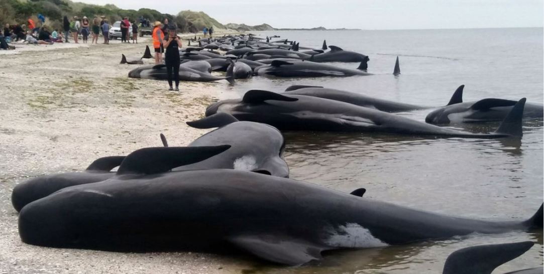 न्यूजीलैंड में दक्षिणी द्वीप के दूरदराज गोल्डन खाड़ी में 400 से ज्यादा पायलट प्रजाति की व्हेल फंस गई थीं, जिनमें से 300 व्हेल मछलियां शुक्रवार को मृत पाई गईं। समाचार एजेंसी एफे न्यूज के मुताबिक, संरक्षण मंत्रालय के सूत्रों ने बताया कि फेयरवेल स्पिट के रूप में मशहूर रेतीले क्षेत्र में गुरुवार 416 व्हेल समुद्र तट पर फंस गईं।