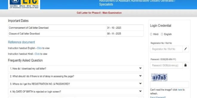 एलआईसी की ओर से एएओ मुख्य परीक्षा का एडमिट कार्ड जारी कर दिया गया है। उम्मीदवार यहां बताए गए निम्नलिखित स्टेप्स की मदद से एडमिट कार्ड डाउनलोड कर सकते हैं।