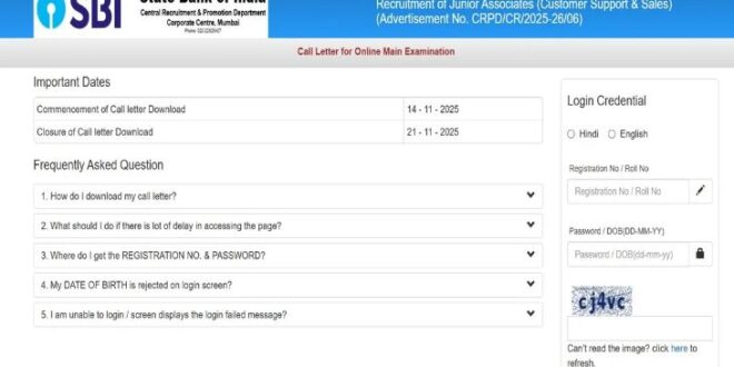 स्टेट बैंक ऑफ इंडिया की ओर से एसबीआई क्लर्क मुख्य परीक्षा का एडमिट कार्ड जारी कर दिया गया है। एसबीआई क्लर्क प्रारंभिक परीक्षा में सफल हुए उम्मीदवार अब ऑफिशियल वेबसाइट पर जाकर मुख्य परीक्षा का एडमिट कार्ड डाउनलोड कर सकते हैं। बता दें, इस भर्ती परीक्षा के जरिये क्लर्क के कुल 5180 उम्मीदवारों का चयन किया जाएगा। साथ ही क्लर्क मुख्य परीक्षा का आयोजन देशभर के विभिन्न परीक्षा केंद्रों में 21 नवंबर, 2025 को किया जाएगा। एडमिट कार्ड डाउनलोड करने के लिए उम्मीदवारों को रजिस्ट्रेशन नबंर, पासवर्ड और कैप्चा कोड को दर्ज करना होगा।