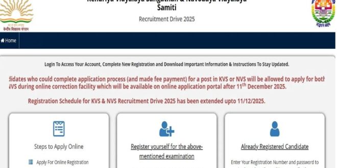 देशभर के केंद्रीय विद्यालयों एवं नवोदय विद्यालयों में टीचिंग एवं नॉन टीचिंग पदों पर भर्ती हो रही है जिसमें शामिल होने के लिए आवेदन की लास्ट डेट कल यानी 11 दिसंबर 2025 निर्धारित है। ऐसे में जो भी अभ्यर्थी भर्ती के लिए पात्र हैं और अभी तक किसी कारणवश फॉर्म नहीं भर सके हैं वे बिना देरी करते हुए तुरंत ही वेबसाइट पर जाकर या इस पेज पर दिए डायरेक्ट लिंक से फॉर्म भर सकते हैं। कल के बाद एप्लीकेशन विंडो बंद कर दी जाएगी।