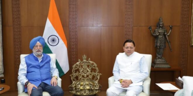 मुख्यमंत्री पुष्कर सिंह धामी ने सोमवार को दिल्ली में केंद्रीय पेट्रोलियम एवं प्राकृतिक गैस मंत्री हरदीप सिंह पुरी से भेंट की। इस दौरान उन्होंने उत्तराखंड की भौगोलिक परिस्थितियों व आपदाजन्य संवेदनशीलता के दृष्टिगत विभिन्न महत्वपूर्ण विषयों पर विस्तृत चर्चा की।