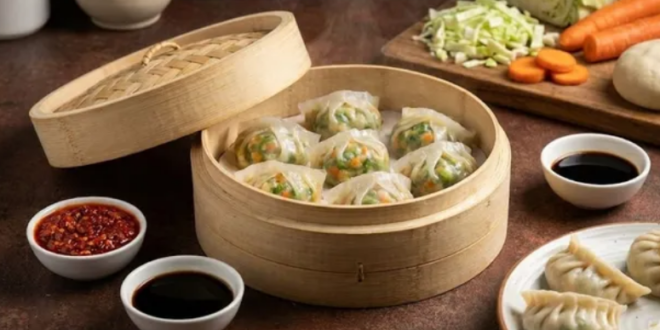 यह लेख घर पर स्वादिष्ट वेजिटेबल मोमोज बनाने की रेसिपी बताता है। इसमें मोमोज की बाहरी परत के लिए मैदा का आटा गूंथने और पत्तागोभी, गाजर, शिमला मिर्च, प्याज जैसी सब्जियों से स्टफिंग तैयार करने की पूरी जानकारी दी गई है। आटे को बेलकर उसमें स्टफिंग भरकर मनचाहा आकार देने के बाद, मोमोज को स्टीमर में 10-12 मिनट तक पकाया जाता है।