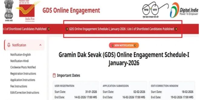 इंडिया पोस्ट जीडीएस रिजल्ट 2026 चेक करने के लिए ऑफिशियल वेबसाइट indiapost.gov.in/gdsonlineengagement पर जाना होगा।