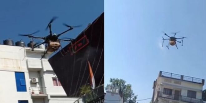 ड्रोन से दून: ऋषिकेश के 17 स्थानों पर कराया गया पानी का छिड़काव