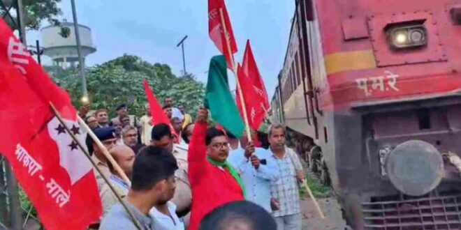 आरा रेलवे स्टेशन पर शुक्रवार को आरा के सांसद सुदामा प्रसाद ने लोगों की सुविधा के लिए जयनगर इंटरसिटी एक्सप्रेस ट्रेन को हरी झंडी दिखाकर प्लेटफार्म नंबर चार से रवाना किया। इस अवसर पर रेलवे अधिकारियों, स्थानीय जनप्रतिनिधि और बड़ी संख्या में आम नागरिक मौजूद रहे। सांसद सुदामा प्रसाद ने कहा कि हमने लोकसभा में आवाज उठाई थी। इसका नतीजा है कि यह ट्रेन आरा से खुल रही है।