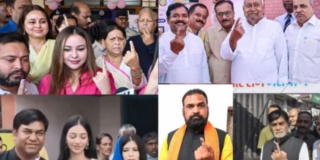बिहार विधानसभा चुनाव 2025 के पहले चरण में गुरुवार सुबह कई वरिष्ठ नेताओं ने अपने मताधिकार का प्रयोग किया। इनमें आरजेडी नेता और इंडिया गठबंधन के मुख्यमंत्री पद के उम्मीदवार तेजस्वी यादव, केंद्रीय मंत्री गिरिराज सिंह और जदयू नेता राजीव रंजन सिंह ‘ललन’ सहित कई प्रमुख नेता शामिल हैं।