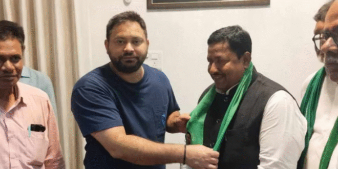बिहार के सारण जिले से बड़ी राजनीतिक खबर सामने आई है। जिले के निवर्तमान जदयू जिलाध्यक्ष अल्ताफ आलम राजू ने देर रात अपने पुराने मित्र शैलेंद्र प्रताप सिंह के साथ पटना जाकर तेजस्वी यादव से मिलकर रात 11:30 बजे राजद की प्राथमिक सदस्यता ग्रहण की। जानकारी के अनुसार, मढ़ौरा विधानसभा क्षेत्र से टिकट न मिलने के कारण अल्ताफ आलम राजू पहले बागी होकर निर्दलीय प्रत्याशी के रूप में नामांकन कर चुके थे। लेकिन राजनीतिक साजिश के तहत तकनीकी कारण बताकर उनका नामांकन रद्द कर दिया गया था। राजद की सदस्यता ग्रहण करने के बाद अल्ताफ आलम राजू ने कहा कि वे तेजस्वी यादव की विचारधारा से प्रेरित होकर पार्टी में शामिल हुए हैं। इस निर्णय में उनके पुराने मित्र और तरैया से राजद प्रत्याशी शैलेंद्र प्रताप सिंह की अहम भूमिका रही, जिनके प्रति उन्होंने आभार भी व्यक्त किया।