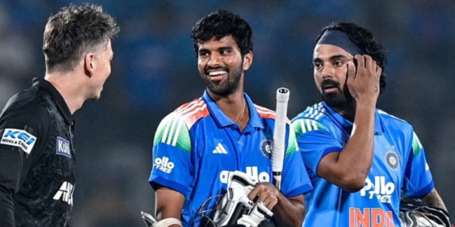 सुंदर ने 7 गेंदों में 7 रन बनाए, लेकिन रन लेते समय वह असहज नजर आए। अंत में केएल राहुल ने मैच को भारत के पक्ष में समाप्त किया और टीम ने सीरीज में 1-0 की बढ़त बनाई।
