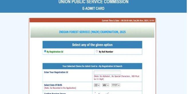 संघ लोक सेवा आयोग की ओर से सिविल भारतीय वन सेवा (IFS) की मुख्य परीक्षा के लिए एडमिट कार्ड जारी कर दिए गए हैं। जो उम्मीदवार प्रारंभिक परीक्षा में सफल घोषित किए गए थे, वे मुख्य परीक्षा का एडमिट कार्ड डाउनलोड कर सकते हैं। यूपीएससी IFS 2025 मुख्य परीक्षा का एडमिट कार्ड आधिकारिक वेबसाइट upsc.gov.in पर डाउनलोड करने के लिए उपलब्ध है। मुख्य परीक्षा का एडमिट कार्ड डाउनलोड करने के लिए उम्मीदवारों को रजिस्ट्रेशन नबंर और पासवर्ड को दर्ज करना होगा।