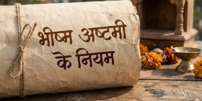 माघ महीने के शुक्ल पक्ष की अष्टमी तिथि को भीष्म अष्टमी (Bhishma Ashtami 2026) मनाई जाती है। यह वह दिन है जब गंगापुत्र भीष्म ने प्राण त्यागे थे। यह दिन पितृ तर्पण, दान और पूजा-पाठ के लिए बहुत महत्वपूर्ण है। इस दिन भीष्म पितामह के निमित्त जल में काले तिल और कुश डालकर तर्पण करना चाहिए। आइए इस दिन से जुड़े कुछ नियमों को जानते है।