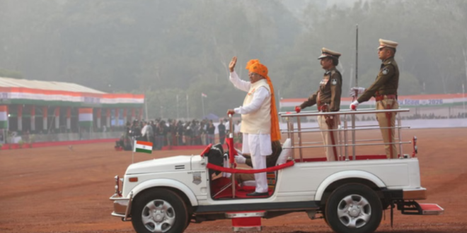 देश आज 77वां गणतंत्र दिवस मना रहा है। इस अवसर पर राजधानी भोपाल के लाल परेड मैदान में राज्य स्तरीय समारोह का भव्य आयोजन किया गया। कार्यक्रम के मुख्य अतिथि राज्यपाल मंगुभाई पटेल रहे। उन्होंने राष्ट्रीय ध्वज फहराया और संयुक्त परेड की सलामी ली। समारोह की शुरुआत पुलिस बैंड द्वारा राष्ट्रगान की प्रस्तुति से हुई। इसके बाद हर्ष फायर के साथ तिरंगे को सलामी दी गई। कार्यक्रम में सशस्त्र बलों, पुलिस और अर्द्धसैनिक बलों की संयुक्त परेड आकर्षण का केंद्र रही, जिसमें कुल 23 टुकड़ियों ने हिस्सा लिया। परेड में अश्वारोही दल और श्वान दस्ता भी शामिल रहा।