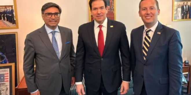 भारत में अमेरिका के राजदूत सर्जियो गोर ने सोशल मीडिया X पर अपने पोस्ट में एक फोटो शेयर करते हुए लिखा, “व्हाइट हाउस में आपका स्वागत है विक्रम मिसरी, अमेरिकी विदेश मंत्री मार्को रुबियो के साथ हुई सार्थक बैठक में हमारे द्विपक्षीय संबंधों खासतौर से व्यापार, अहम खनिजों, रक्षा और क्वाड को लेकर चर्चा हुई। विदेश मंत्री रुबियो अगले महीने भारत आने को लेकर उत्सुक हैं।”