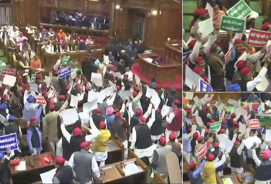 मुख्यमंत्री योगी आदित्यनाथ ने सदन के बाहर आकर मीडिया के सामने राज्यपाल के अभिभाषण के समय राज्यपाल के खिलाफ नारेबाजी की निंदा की। सीएम योगी ने कहा कि कागज के गोले फेंकना निदनीय है। इससे यह साफ होता है कि सपा अपने गुंडा गर्दी से बाहर नही आ पा रही है। सपा-बसपा का यह कृत्य निदनीय है। इन दलों का यह आचरण लोकतंत्र को कमजोर करता है। यह साबित करता है कि विपक्ष का लोक तंत्र पर भरोसा नही है। आज का कृत्य यह साबित करता है कि किस तरह का सिस्टम ये चाहते है। सदन में जब इनका यह हाल है तब बाहर इनका क्या हाल होगा अनुमान लगाया जा सकता है। राज्यपाल की गरिमा के खिलाफ यह कृत्य निदनीय है। राज्यपाल ने सरकार की उपलब्धियो को बताया है। हम उनका स्वागत करते है ।