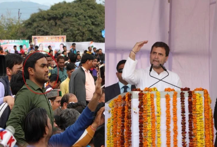 मंच पर जब राहुल गांधी अपना भाषण दे रहे थे तब वे नीरव मोदी और मेहुल चौकसी के बारे में बोल रहे थे। तभी उन्होंने भीड़ में से एक युवा का नाम पूछा। कार्यकर्ताओं ने युवा नितिन का नाम उन्हें बताया।