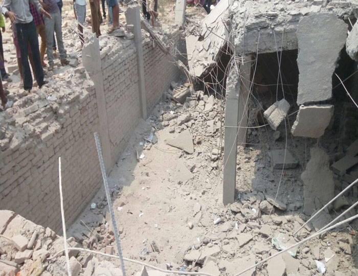 धमाके में मरने वाले पति और पत्नी बताए जा रहे हैं। धमाका इतना जोरदार था कि पूरा घर मलबे में तब्दील हो गया और दंपत्ति के परखच्चे उड़ गए। दोनों के शव के टुकड़े कई मीटर तक फैल गए।