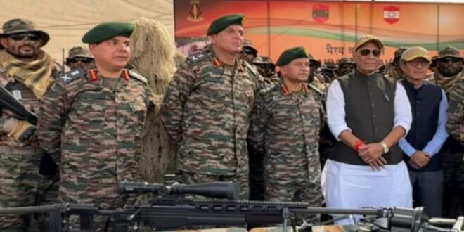 रक्षा मंत्री राजनाथ सिंह ने शुक्रवार (24 अक्तूबर) को राजस्थान के पश्चिमी मोर्चे पर लौंगेवाला युद्धक्षेत्र में सैनिकों के साथ बातचीत की। राजनाथ सिंह ने लौंगेवाला युद्धभूमि का दौरा किया और वहां आयोजित ‘थार शक्ति अभ्यास’ के दौरान सैनिकों से संवाद किया। राजनाथ सिंह ने भारतीय सेना की नई गठित ‘भैरव बटालियन’ के जवानों से भी भेंट की।