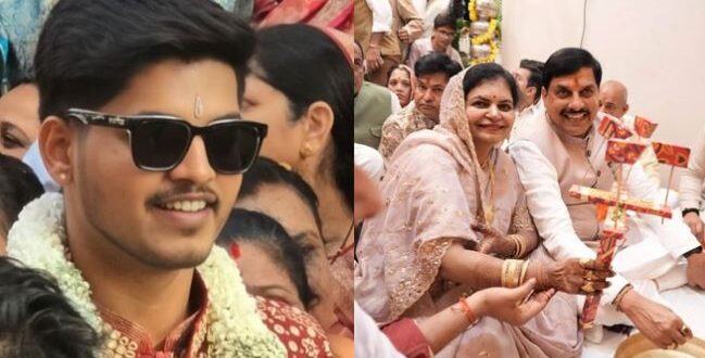 मध्यप्रदेश के मुख्यमंत्री डॉ. मोहन यादव के छोटे बेटे डॉ. अभिमन्यु यादव की शादी की रस्में चल रही हैं। शादी समारोह में मेहंदी, माता पूजन और मण्डप के आयोजन हो चुके हैं। मुख्यमंत्री के बेटे होने के बाद भी डॉ. अभिमन्यु की शादी बिलकुल अलग अंदाज में शोर-शराबे से दूर हो रही है। डॉ. अभिमन्यु यादव भी शादी समारोह में सदगी भरे अंदाज में साधारण से लाल लिबास में नजर आए। आंखों पर काला चश्मा, कानों में टॉप्स और माथे पर जगमगाता तिलक लगाए नजर आए। डॉ. अभिमन्यु यादव ने गजरानुमा माला भी पहन रखी थी।