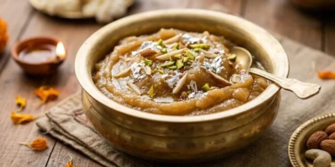 आखिर में, जब हलवा कड़ाही के किनारे छोड़ने लगे और घी अलग होने लगे, तो समझ जाइए आपका हलवा तैयार है। अब इसमें इलायची पाउडर और कटे हुए मेवे डालकर गैस बंद कर दें।