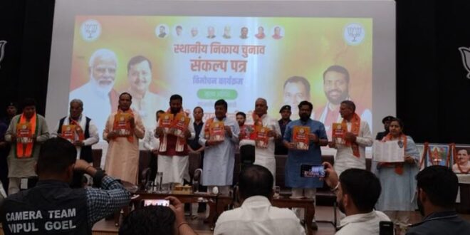 निकाय चुनाव को लेकर भाजपा आज पंचकूला में चुनावी घोषणा पत्र जारी किया। मुख्यमंत्री नायब सिंह सैनी की मौजूदगी में पार्टी घोषणा पत्र जारी किया। कांग्रेस अपना घोषणा पत्र जारी कर चुकी है।