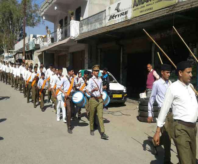 हिंदू नववर्ष के उपलक्ष्य में गरुड़ में आरएसएस ने किया पथ संचलन