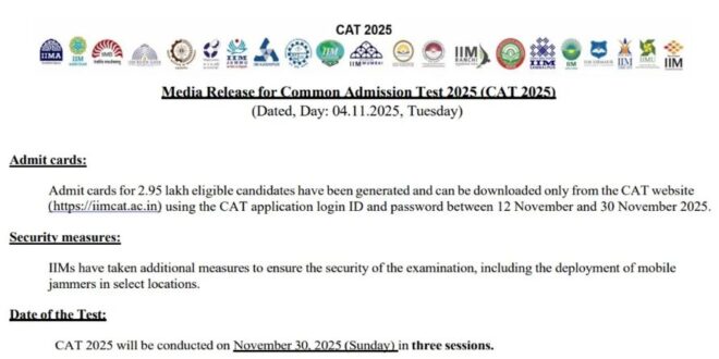 12 नवंबर को जारी होगा कॉमन एडमिशन टेस्ट का एडमिट कार्ड