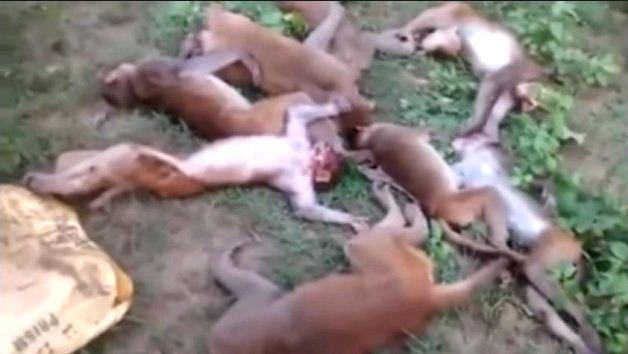 वन विभाग का कहना है कि बंदरों की मौत हार्ट अटैक पडऩे से हुई है। उत्तर प्रदेश के लखीमपुर खीरी के मोहम्मदी इलाके में 12 बंदरों के शव एक साथ पायेगें। लोगों ने जब 12 बंदरों का शव एक साथ पड़े देखा तो वह लोग सन्न रह गये। पल भर में यह बात पूरे इलाके मेें आग की तरह फैल गयी।