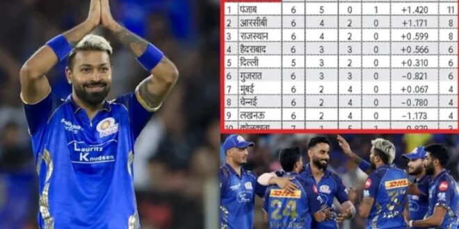 गुजरात की टीम हार के बाद छठे पायदान पर ही है, जबकि जीत के बाद एमआई की टीम को नेट रन रेट में बड़ा फायदा मिला। मुंबई की टीम ने सीजन की अपनी दूसरी जीत के साथ 10वें पायदान से 7वें पायदान पर छलांग लगाई। उन्होंने इस दौरान केकेआर, एलएसजी और सीएसके को पछाड़ा।